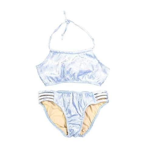 GIRL'S LIGHT BLUE TWO PIECE VELVET BATHING SUIT